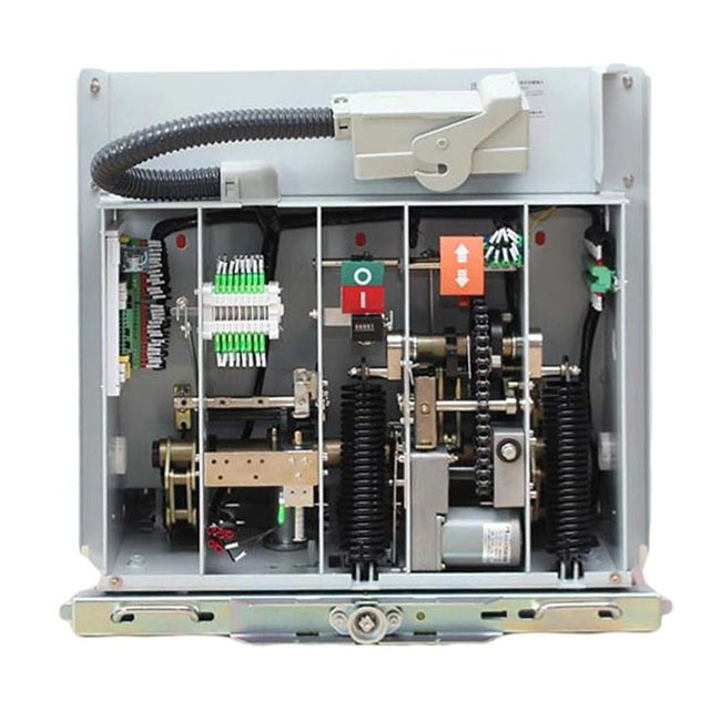 A SwitchGear-szal, mint például a KYN28-24 (GZS1) kompatibilitáshoz tervezték, ez a termék rögzített telepítésekhez alkalmas. A vákuum -megszakító azon az elven alapul, hogy amikor a mozgó és a statikus kapcsolatok a működési mechanizmuson keresztül nyitják meg, ív alakul ki köztük. Az érintkezési felületek magas hőmérsékletű illékonyodása mágneses mezőt generál, az ív gyorsan meghajtja az érintkezési felület tangenciális iránya mentén. A fémgőzt egy fémhengeren (pajzs) kondenzálják, és az ív természetesen elolt, amikor a nullát keresztezi, lehetővé téve a médium erősségének gyors helyreállítását.
